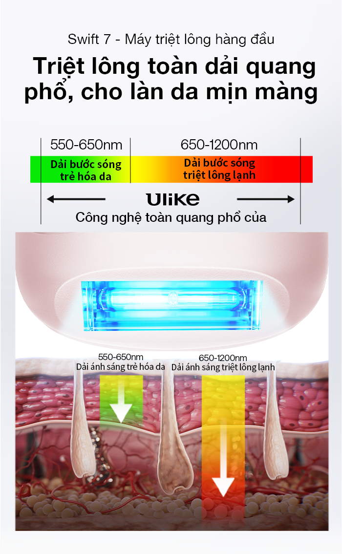 Máy triệt lông Ulike Swift 7 công nghệ làm mát Ice Cooling IPL Sapphire Hồng - LK