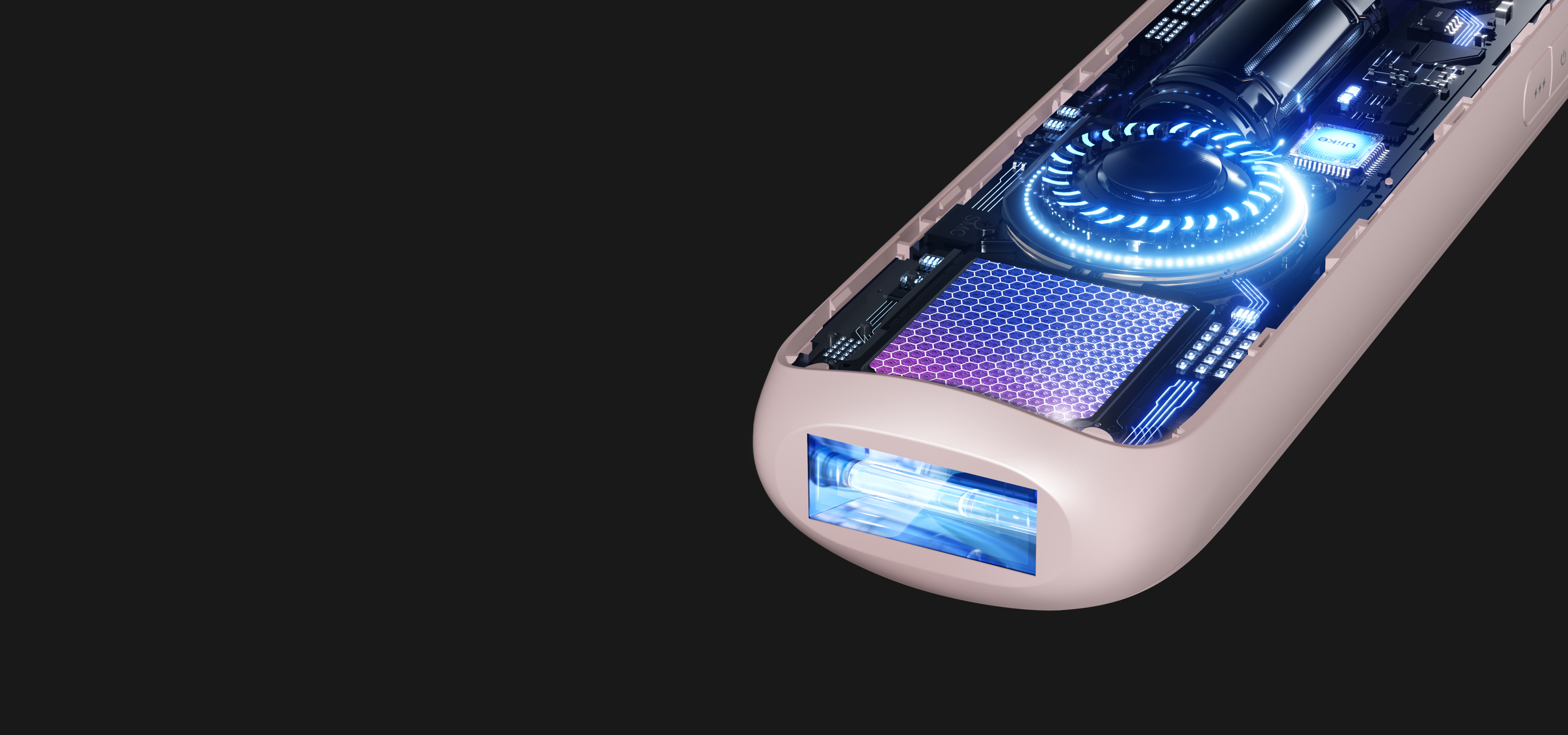 *[USHR] Chế độ Triệt lông cường độ cao. Tham chiếu theo Bằng sáng chế phát minh Trung Quốc số 7.993.469. Cơ chế tích lũy nhiệt từ nhiều xung IPL liên tiếp giúp nâng cao hiệu quả và tăng sự thoải mái khi sử dụng.